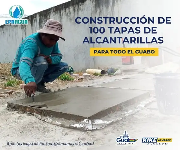 La Empresa Pública de agua potable y alcantarillado del cantón El Guabo se encuentra ejecutando la construcción de 100 tapas de hormigón armado para el sistema de alcantarillado para colocarlas paulatinamente en los diferentes lugares del cantón donde se requieran. 🏗️⚙️ La primera fase de esta acción se está realizando con éxito gracias a la coordinación interinstitucional entre la Alcaldía de El Guabo liderada por el Mgs. Hitler Álvarez Bejarano y la Empresa Pública EPAAGUA, las cuales contribuyen al buen funcionamiento del sistema, evitando los reboses y obstrucciones en la cabecera cantonal 🌟💧